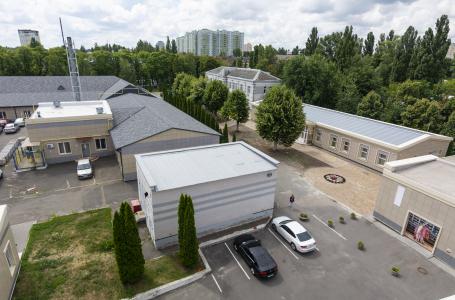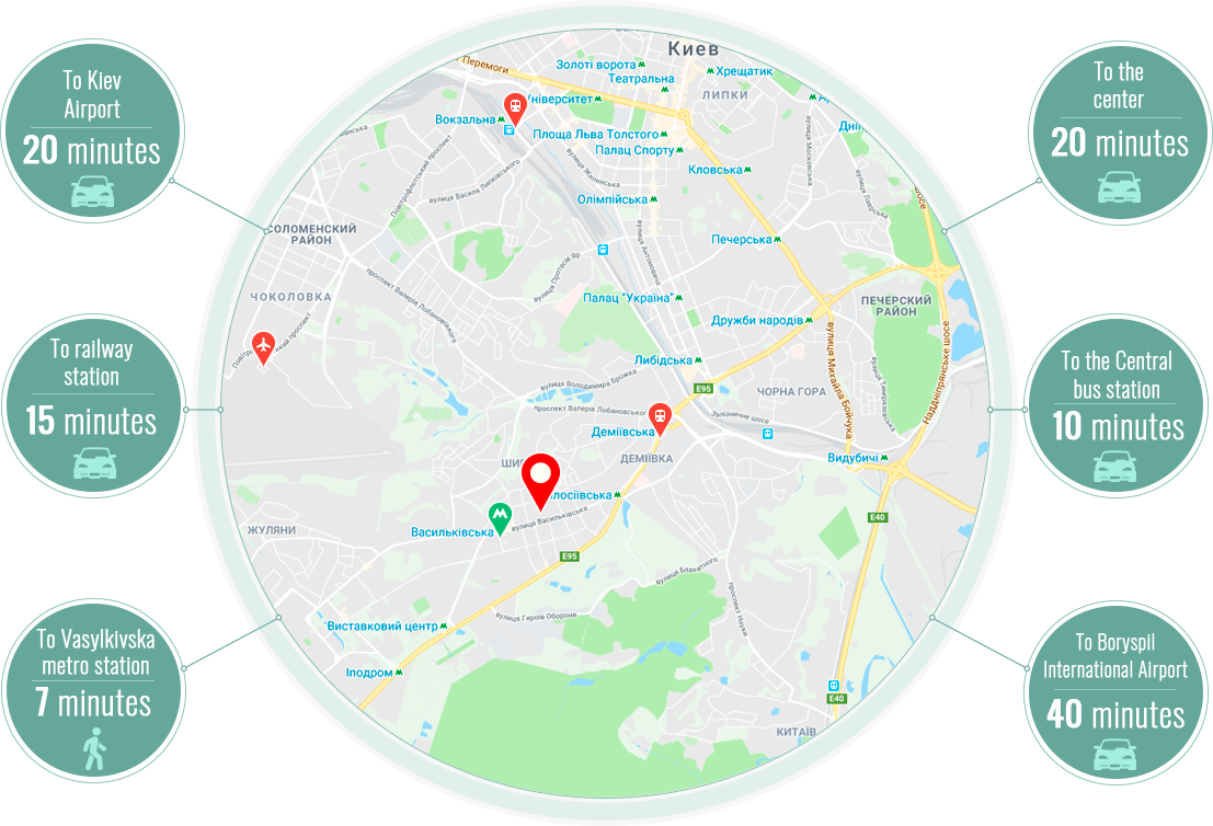 Tandem Business Complex is located at 120/4 Kozatska Street in the Holosiivskyi district of Kyiv, near Vasylkivska metro station.